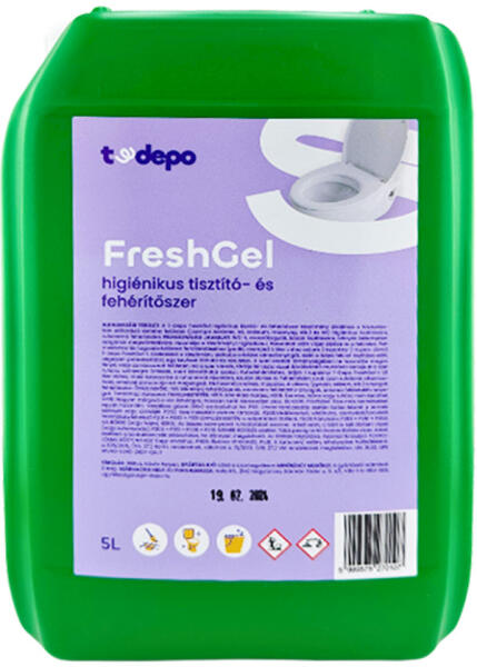 Biztosítson higiénikus környezetet a T-Depo FreshGel klór tartalmú fertőtlenítő tisztítószerrel! A termék hatékonyan pusztítja el a baktériumokat, vírusokat és gombákat, így ideális a konyha, a fürdőszoba és a mosdókagyló fertőtlenítésére. Termékjellemzők: Széleskörű felhasználás: használható a konyhában, a fürdőszobában, a mosdókagylóban és más felüle