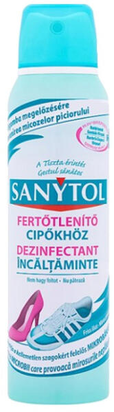 CIPŐFERTŐTLENÍTŐ AEROSOL 150 ML SANYTOL A Sanytol Fertőtlenítő spray cipőhöz egyedülálló hatóanyaga megszünteti a kellemetlen szagokat, így garantálja a frissességet, és elpusztítja a mikrobákat is. Egyedülálló hatóanyaga a belső rétegekig hatolva fertőtlenít, felveszi a harcot a mikrobák, gombák, vírusok és baktériumok ellen. Elpusztítja többek között: a gomb