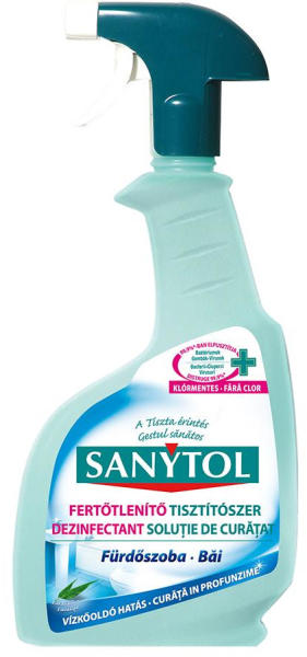Klórmentes fürdőszobai tisztítószer fertőtlenítő és vízkőoldó hatással. Elpusztítja a baktériumok, vírusok és gombák 99,9%-át, többek közt az influenza A (H1N1) vírust. Penészölő hatású. Alaposan fertőtlenít, miközben óvja a felületeket. Nem hagy nyomot. Friss eukaliptusz illatú. A Sanytol ezen felülettisztítója fürdőszobai használatra lett kifejlesztve, extr