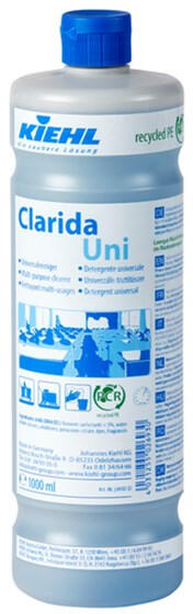 Univerzális tisztítószer KIEHL Clarida Uni 1L Univerzális tisztítószer a napi takarításhoz. Már igen alacsony alkalmazási koncentrációban is hatékony tisztító hatás. A megtisztított felületnek természetes látszatot biztosít, anyagkímélő. Nem jelölés köteles a CLP rendelet szerint.