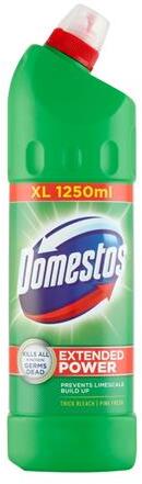 Sokoldalú tisztítószer és hatásos fegyver a kórokozók ellen az egész házban. A Domestos hatékony a baktériumok, gombák, spórák és vírusok ellen. A Domestos Extended Power vízkőlerakódást gátló hatóanyagot tartalmaz. Megtapad a víz szintje alatt is, eltávolítja a koszt és gátolja a vízkő lerakódását. - elpusztítja a baktériumokat - segít meggátolni a vízkőlera