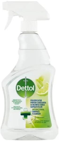 A Dettol antibakteriális felülettisztító spray elpusztítja a vizsgált baktériumok és vírusok 99,9%-át*. Eltávolítja az allergéneket. Kiszerelés: 500 ml / flakon, 6 flakon / karton, 75 karton / raklap (450 flakon/raklap) Fertőtlenítő hatású tisztítószer szórófejes 500 ml Dettol Lime & Mint termék alkalmazásakor ügyeljen a biztonságra! Használat előtt mindig olvassa