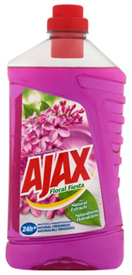 Általános tisztítószer AJAX Floral Fiesta Lilac breeze 1L Ajax Ajax Floral Fiesta Lilac Breeze általános felülettisztító, padlófelmosószer virág illattal (orgona). Nagyobb felületek tisztítására hígítva, makacsabb szennyeződések eltávolítására töményen is alkalmazható. minden mosható felületre kiváló tisztítóhatás fantasztikus orgona illat felmosáshoz 6 liter ví