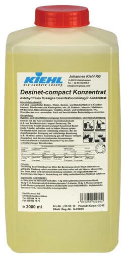 Desinet-compact Koncentrátum Foly ékony, aldehidmentes tisztító- és fertőtlenítő koncentrátum - Az EN és a VAH/IHO által bevizsgált felülettisztító- és fertőtlenítő koncentrátum - Aldehid-, fenol- és szervesfémmentes - A termék a felhasználás során alaposan tisztít, semleges illatú - Hatékony grampozitív és gramnegatív baktériumok (beleértve szalmonella és liszt