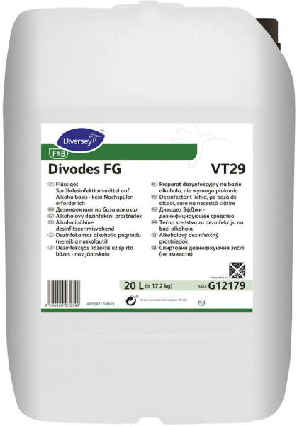 Divodes FG Általános fertőtlenítőszer műszak közbeni és zárófertőtlenítésre Termékleírás A Divodes FG egy használatra kész spray fertőtlenítőszer, mely alkalmas az élelmiszeripar és a vendéglátóipar minden területén, a berendezések felületének előzetes tisztítás utáni fertőtlenítésére. Legfontosabb tulajdonságok A Divodes FG egy gyorsan ható spray fertőtle
