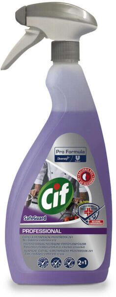 Termékleírás: A Cif 2in1 kombinált tisztító- fertőtlenítőszer illatmentes összetételével alkalmas az élelmiszeriparban, nagykonyhákban (vendéglátás, közétkeztetés) élelmiszerrel érintkező-, illetve mosható felületek és a használatban lévő eszközök tisztító fertőtlenítéséhez. Legfontosabb tulajdonságok: Parfümmentes fertőtlenítés, ideális élelmiszeripari