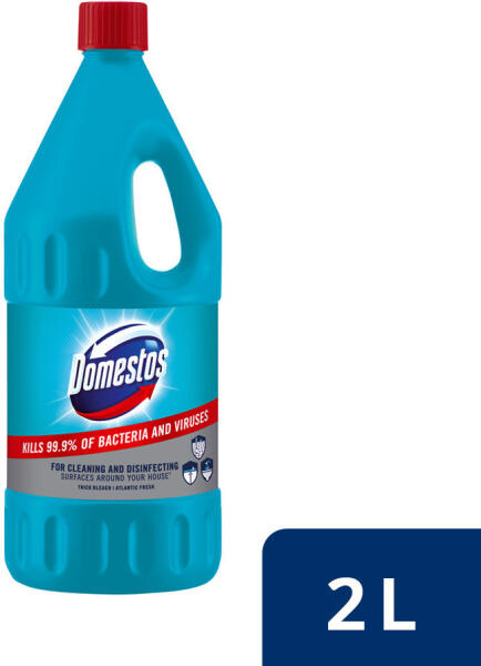 Sokoldalú tisztítószer és hatásos fegyver a kórokozók ellen az egész házban. A Domestos hatékony a baktériumok, gombák, spórák és vírusok ellen. A Domestos Extended Power Atlantic vízkőlerakódást gátló hatóanyagot tartalmaz. Megtapad a víz szintje alatt is, eltávolítja a koszt és gátolja a vízkő lerakódását. Domestos Extended Power Atlantic fertőtlenítő 2 liter