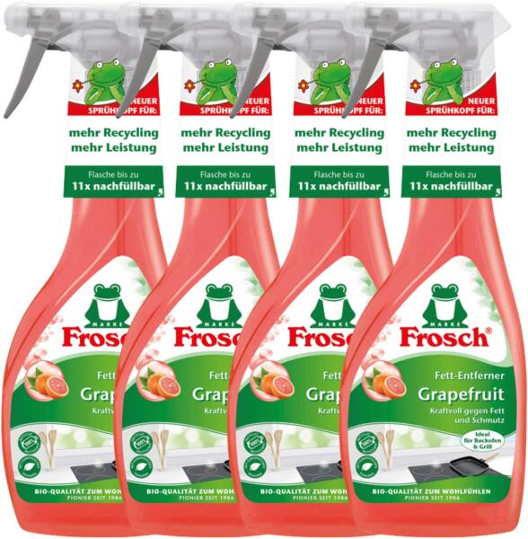 Különlegesen hatékony, természetes grapefruit kivonatot tartalmazó összetételével hatékonyan távolítja el a zsíros szennyeződéseket. Élelmiszerrel érintkező felületeken is használható, így tökéletes konyhai tisztítószer. Mikroműanyag mentes. A flakon 100%-ban újrahasznosított műanyagól készült. Jellemzői: - Kiszerelése: 4 x 500 ml - Zsíroldó hatású - Grapefrui