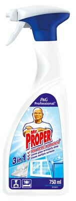 A Mr Proper Professional antibakteriális hatású általános tisztítóspray azonnal bevethető fertőtlenítő és tisztító eszköz beltéri felületeken, például üvegfelületeken. Egyetlen termék, amely hárommal is felér: Fertőtlenítő: fertőtlenítő hatás az EN 1276 és az EN 13697 szabvány szerint; általános tisztító hatás: a legtöbb mosható felületen bevethető; üvegt