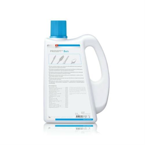 A PROSEPT® Burs egy használatra kész fertőtlenítő oldat forgó fogászati és sebészeti precíziós műszerekhez, például gyémánt fúrókhoz, keményfém fúrókhoz, polírozókhoz és acélból készült eszközökhöz. A fertőtlenítőszer széles spektrumot kínál mindössze egy perc alatt. Kiegyensúlyozott, alkoholokon, felületaktív anyagokon és lúgokon alapuló összetétele