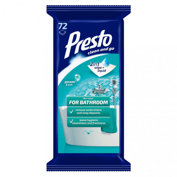 Fürdőszobai törlőkendő a mosdókagylókhoz, kádakhoz, kerámialapokhoz és csapokhoz. Az aktív tisztítószer tartalmának köszönhetően hatékonyan távolítja el a szappanmaradványokat valamint az egyéb fürdőszobai szennyeződéseket. Szennyeződésektől való védelem, a különleges formulának köszönhetően védőréteget hagynak a tisztított felületen. Öszzetevők: Illatan