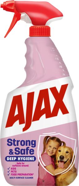 Tartsa tisztán és higiénikusan a felületeket az Ajax Strong & Safe többcélú tisztító spray-vel! Az Ajax Strong & Safe tisztító spray biztonságos a gyerekekkel, háziállatokkal és élelmiszerekkel érintkező felületeken*. *Az élelmiszerrel, gyerekekkel és háziállatokkal érintkező felületek ivóvízzel történő öblítése mindig javasolt. A többcélú felülettiszt