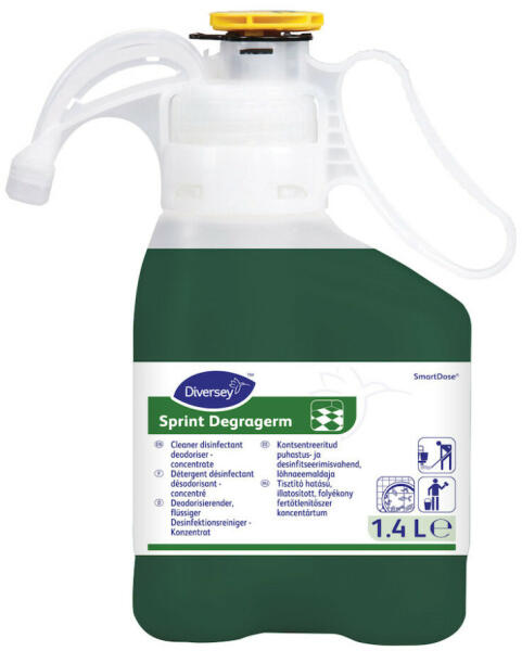 Sporocid hatású napi tisztító-, fertőtlenítőszer szuperkoncentrátum minden típusú, vízálló kemény felületre és padlóra. Alkalmas kórházi zárófertőtlenítésre is. A Sprint Degragerm SD egy magas koncentrációjú napi tisztítószer. Hatékony baktériumok, gombák, élesztőgombák és burkos vírusok ellen Tisztít, anélkül, hogy csökkentené a bevonatolt padló fényét