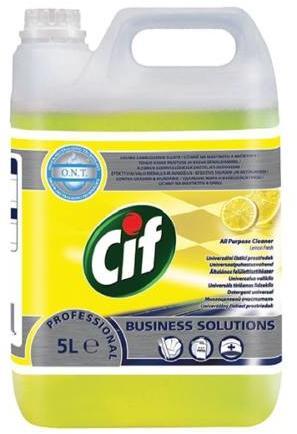 A Cif APC Lemon egy kellemes illatú általános tisztítószer fényezetlen padlók, falak és mosható kemény felületek gyors és egyszerű napi takarítására. Cif Professional APC lemon fresh Általános felülettisztítószer 5l leírásA Cif Professional APC lemon fresh általános felülettisztítószer citrom illattal egy kellemes illatú tisztítószer a csiszolatlan padlók, falak, ke