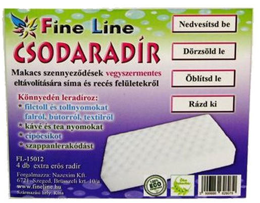 Használatával vegyszermentesen távolíthatóak el a makacs szennyeződések síma és recés felületekről. 4 db-os csodaradír; Fine Line termék makacs szennyeződések eltávolításához.