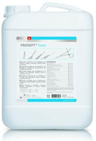 PROSEPT® Fortis egy erőteljes koncentrátum a fogorvosi műszerek gyors fertőtlenítéshez. A termék erős tisztító tulajdonságai szükségtelenné teszik az elő -és utótisztítást. Ezen kívül nagyon hatékony korróziógátlókat tartalmaz a rozsda ellen. Az oldat nem okoz elszíneződést vagy fehérje-vér rögzülést a műszerekben. Használható ultrahangos tisztítóberendezés