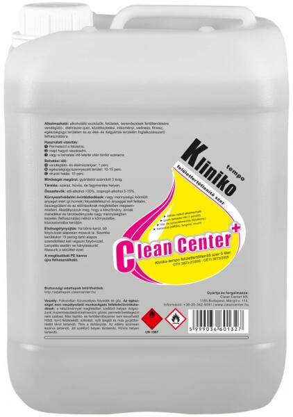 A HACCP-ben előírt fertőtlenítésen felül szelektív vírusölő hatással rendelkezik, ezzel alkalmassá téve magát az egészségügyi / kórházi használatra. KLINIKO-TEMPO előnyei Baktericid, fungicid, szelektíven virucid(minden burkos vírus+rota-, adeno-, norovírus) A követelményeken felül szelektív vírusölő hatással rendelkezik, ezzel alkalmassá téve magát az egészség