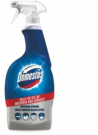 A Domestos Fertőtlenítő hatású tisztító spray egyedi formulájának köszönhetően tisztít és pusztítja a kórokozókat. Egyszerűen kezelhető, tökéletesen ráirányítható a felületekre, melyeket csillogóan és higiénikusan tisztává varázsol. Nagyszerűen elbánik a makacs szennyeződésekkel, a konyhai zsír- és penészfoltokkal is. - higiénikusan tisztává és csillogóv