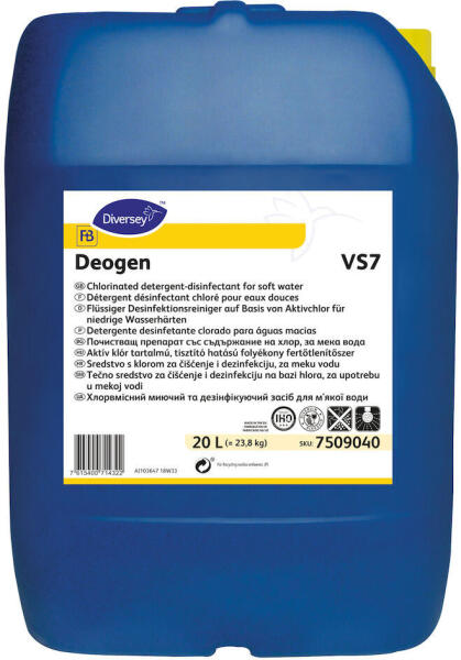 A Deogen VS7 egy nagy teljesítményű fertőtlenítőszer, amelyet kifejezetten a makacs szennyeződések eltávolítására és a higiénikus tisztaság biztosítására fejlesztettek ki. A 20 literes ipari kiszerelés hosszú távú, gazdaságos használatot tesz lehetővé. A Deogen VS7 Fertőtlenítőszer egy sokoldalú, koncentrált formula, amely megbízható tisztító- és fertőtlenítő