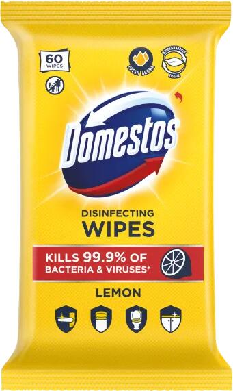 Domestos Lemon Fresh fertőtlenítő törlőkendő 60 db