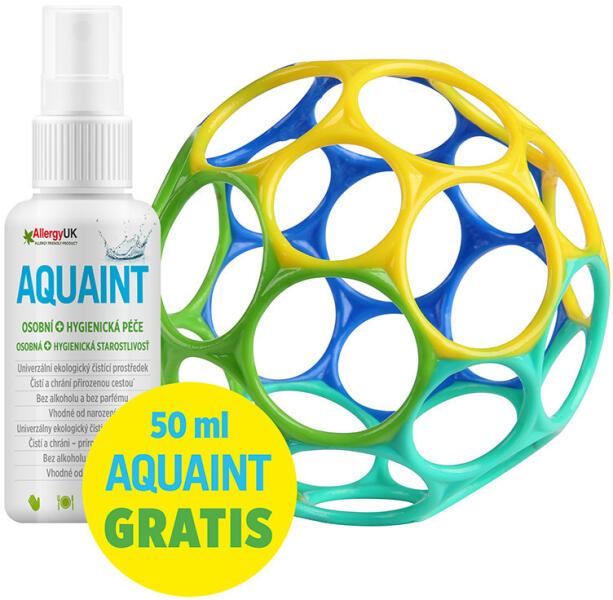 OBALL Toy Oball Classic 10 cm kék/zöld 0m+Aquaint 100% organikus tisztítóvíz 50 ml A játékok, amelyeket minden baba szeret!A kisbabák kezében még nincs nagy erő, de a fogásuk is erős, ezért a legtöbb játék túl nehéz a fogásukhoz, vagy nem tudják megfogni, ami frusztrálja őket. Ezért az Oball csörgő a baba legideálisabb első játéka - súlya mindössze 41 g, és az egye