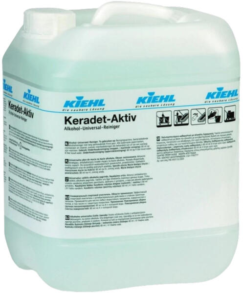 Aktív tisztító, higiénikus hatású alkoholos tisztítószer, hosszan tartó illattal. A Keradet-Aktív csíkmentesen szárad, ezért különösen a magas fényű felületek tisztítására alkalamas. Felhasználási terület Minden vízálló felületen, berendezési tárgyon és padlóburkolaton, valamint bevonattal védett felületen használható.