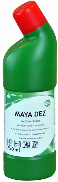 Hatásos, klórtartalmú fertőtlenítőszer, a kórokozó baktériumok és kellemetlen szagok ellen. Mosható felületek tisztítására és fertőtlenítésére. Hatásos, klórtartalmú fertőtlenítőszer, a kórokozó baktériumok és kellemetlen szagok ellen. Mosható felületek tisztítására és fertőtlenítésére. Tulajdonságok : Klóralapú folyékony fertőtlenítőszer, mosható fe