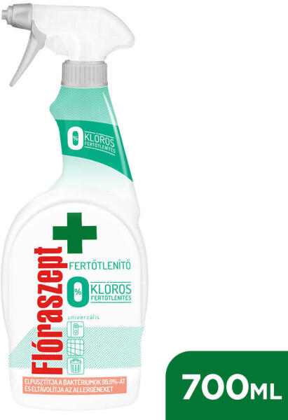 Termék információkTermék jellemzők: Klórmentes Elpusztítja a baktériumok 99.9%-át Eltávolítja a konyhai és fürdőszobai szennyezőséseket Eltávolítja az allergéneket Kellemes illat Higiénikus tisztaságTermék bemutatás:A Flóraszept univerzális klórmentes fertőtlenítő hatású tisztítószere elpusztítja a baktériumok és vírusok 99%-át. Kiválóan és könnyedén elt