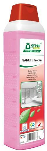 Környezetbarát, citromsav bázisú, kellemes illatú napi szaniter tisztítószer, mely csík- és foltmentesen tisztítja a vizesblokk valamennyi felületét. Minden savra nem érzékeny burkolaton alkalmazható. Vízlepergető hatású. A Sanet Zitrotan oldja az ásványi szennyeződéseket mint pl. : vízkő, cement, szappanlerakódások és a zsíros szennyeződéseket. Minden saválló ter