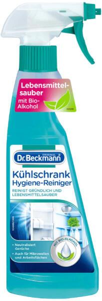 Higiénikus és alapos tisztaságot biztosít a hűtőszekrényben, a mikrohullámú sütőben, hűtőtáskában, konyhai munkafelületen. Dr. Beckmann Hűtőszekrény tisztító 250 ml Higiénikus és alapos tisztaságot biztosít a hűtőszekrényben, a mikrohullámú sütőben, hűtőtáskában, konyhai munkafelületen. Élelmiszerek tárolására használatos felületek tisztítása bioalkohol