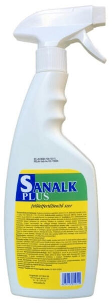 FELÜLETFERTŐTLENÍTŐ SZÓRÓFEJES 500 ML SANALK PLUS Hatékony tisztítószer, mely különböző felületeken alkalmazható. Antimikrobiális hatás: baktericid (MRSA), fungicid, tuberkolocid, és virucid (HBV és HIV inaktiváló hatású) tulajdonságokkal rendelkezik. Felhasználási terület: Ideális alkoholálló és alkoholérzékeny kisebb felületek (például plexiüveg, ultrahang-