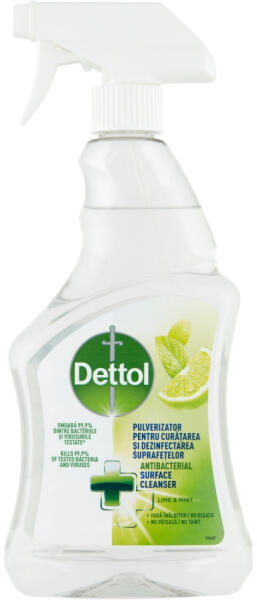 Dettol Antibakteriális Felülettisztító Spray Lime & Menta - Elpusztítja a vizsgált baktériumok és vírusok 99,9%-át* Dettol antibakteriális felülettisztító spray, Lime & Menta (500 ml) Termék információk: Fertőtlenítés és tisztítás Benzalkónium-klorid, alkil-poliglikozid (C9-C11), C12-C16 Pareth 7 Tartalmaz Víz, szódabikarbóna, nátrium-karbonát, nátrium-edetát