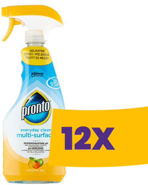 A Pronto Everyday Clean Multi-Surface általános felülettisztító spray semleges pH-értékű formuláját arra tervezték, hogy megbirkózzon a makacs foltokkal és szennyeződésekkel, de megfelelően kíméletes legyen mindennapi használat esetén is. Tisztít és megóv, pH-semleges, A kíméletes tisztításért akár 101 féle felületen. A flakon 100%-ban újrahasznosított műanyagból
