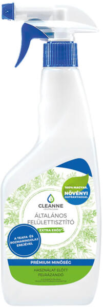 Megszületett a Cleanne új terméke, a Cleanne extra erős Általános felülettisztítója 100% tisztaságú teafaolajjal, a megszokott Cleanne természetes hatóanyagaival. A Cleanne extra erős Általános felülettisztítóját számtalan helyen tudod hasznosítani, hiszen minden lakásnak rengeteg tisztítandó felülete van. Ha csak a konyhára gondolunk, máris megjelenik előttünk a soka