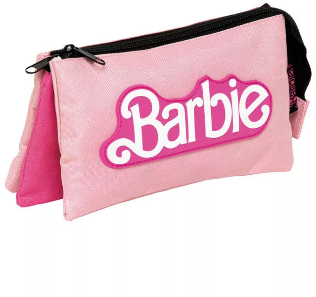 Barbie 3 rekeszes töltetlen tolltartó Felsős gyerkőcök nagy kedvence! A bedobálós tolltartó ideális az órákon legtöbbet használt írószerek tárolására. Cipzárral nyitódik-záródik és kis helyen elfér az iskolatáskában. Anyaga: 100% poliészter Méret: 21 x 11 cm