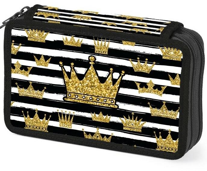 2 emeletes tolltartó fekete koronákkal, üres. A tolltartó 24 hurkot tartalmaz az íróeszközökhöz és 3 nagyobbat, pl. vonalzóhoz, ceruzahegyezőhöz, radírhoz vagy ollóhoz. A nagy cipzárnak köszönhetően nagyon könnyen záródik, kiváló minőségű és tartós anyagokból készült. Gyártó: MFP