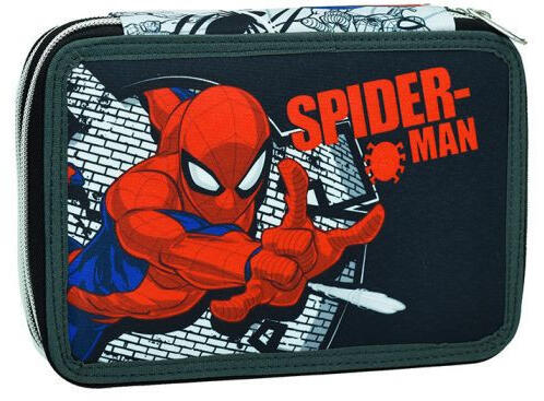 Spiderman, Pókember tolltartó töltött 2 emeletes. Tartalma: - 10 db színes ceruza - 10 db színes filctoll - 2 db grafitceruza - 1 db radír - 1 db vonalzó - 1 db hegyező - 1 db jegyzettömb - 1 db órarend