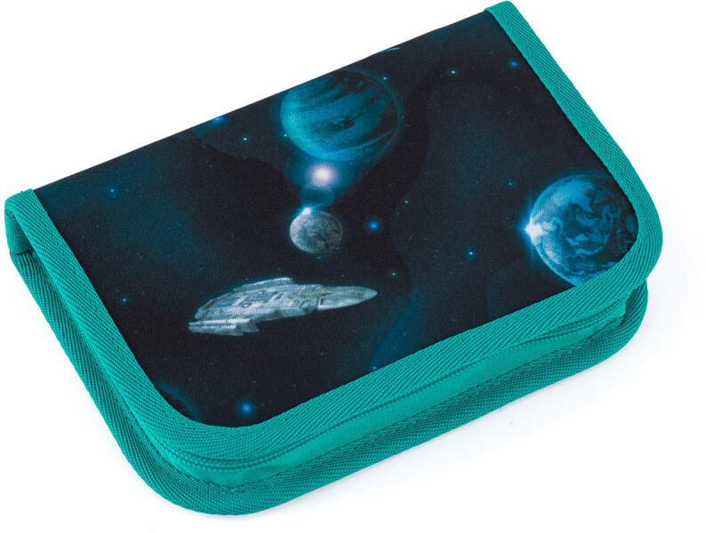 Egyszintes, iskolai tolltartó fiúknak két kihajtható füllel, üres. A szárnyak kívül egy praktikus átlátszó zsebet tartalmaznak az ütemezéshez stb. A tolltartó 23 hurkot tartalmaz zsírkréták, ceruzák és tollak számára, valamint 3 nagyobb hurkot, például olló, radír, hegyező vagy vonalzó számára. A nagy cipzárnak köszönhetően nagyon könnyen záródik. Gyártó: MFP