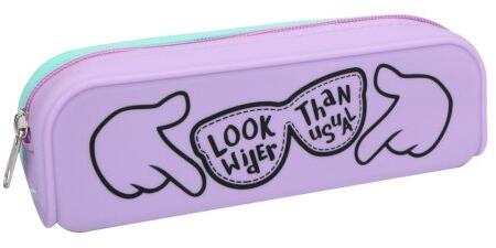Hosszú téglalap alakú tolltartó 1 cipzárral, melyben kényelmesen elfér minden író- és rajz kellék. könnyen mosható anyag (szilikon) iskolai hátizsáknak megfelelő méret