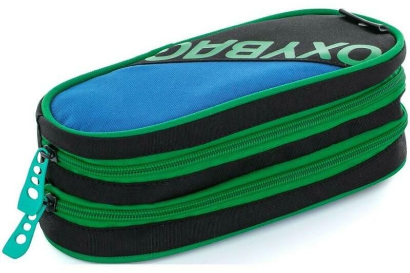 Emeletes fiús tolltartóiskolába, üres. Az első emeleten 10 gumihurkot tartalmaz zsírkrétához, ceruzához és három gumihurkot radír vagy hegyező tárolására. Egy zseb is található az apró tárgyak számára patentos zárással. A tolltartó második emeletén egy átlátszó zseb található az órarendnek és további 9 erős gumiszalag a különböző méretű íróeszközökhöz