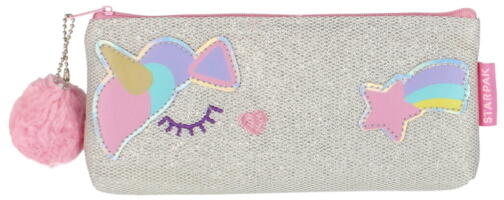 Unikornis cipzáros tolltartó belseje egyterű, sok-sok írószer - ceruza, radír, vonalzó, toll - elfér benne. Különleges unikornis mintája, csillogó anyaga és a cipzárján lévő puha pompom is igazán egyedivé és csajossá teszik.