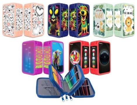 Kiváló minőségű 3 cipzáras iskolai tolltartó, üres. Témák keverékében érkezik.
