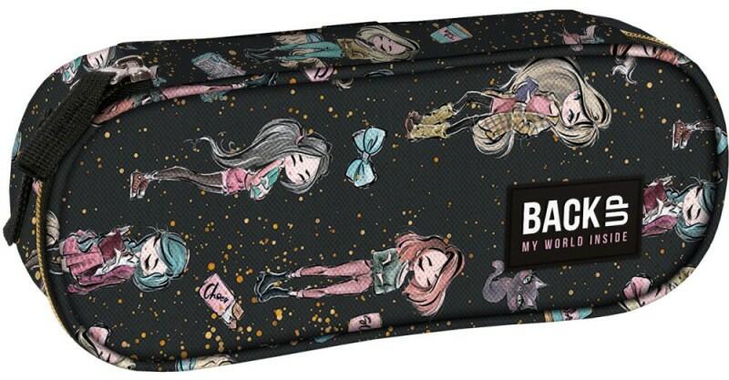 Elegáns fekete tolltartó játékos mintával. A figurák nem csupán díszítések, hanem a személyiség kifejeződésének eszközei is, amelyekkel minden fiatal lány azonosulhat. Praktikus, egyrekeszes, cipzárral záródó tolltartó. A BackUP egyrekeszes tolltartó a következőket tartalmazza:- tágas rekesz a szükséges tartozékoknak- 4 rögzítő fül tollak/ceruzák számára és egy
