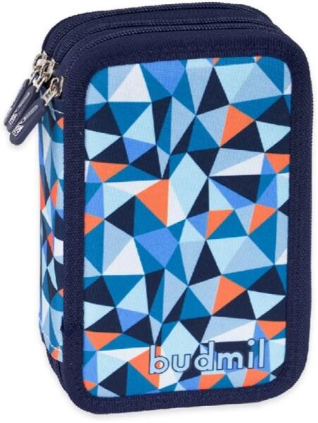 19,7x12,5x7,3 cm háromemeletes nagyméretű tolltartó alapanyaga vízlepergető geometrikus mintával belül órarendtartóval 41 ceruzahellyel poliészter.