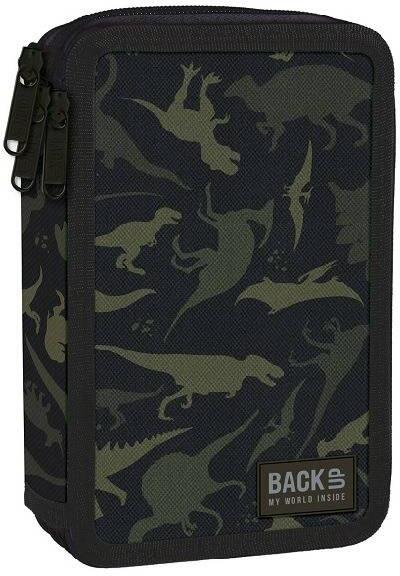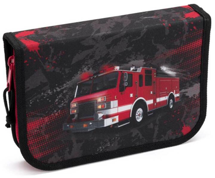Egyrészes tolltartó fiúknak 23 különböző méretű gumiszalaggal a nagyobb ceruzák vagy tollak, vonalzó, hegyező és radír kényelmes tárolásához. A két belső szárny átlátszó zsebbel rendelkezik a külső oladlán, az órarend vagy egyéb apró dokumentumok számára. Belső oldalán egy kis zseb található, amely patenttal zárható. Újdonság : az egyrészes tolltartók cipz