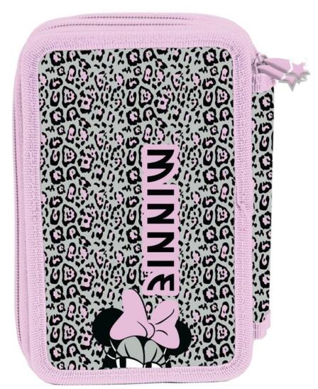 A Minnie Mouse felszerelt, 3 emeletes tolltartó - Girls support girls teljes felszereltséggel kapható. A tolltartó tartalma: 2 db grafit ceruza, 2 db toll, radír, hegyező, Minnie egér mintás vonalzók és órarend, 9 db filctoll, 9 db tűfilc és 18 db mintás színes ceruza. A tolltartót párducminta, Minnie egér képe és csillagos húzóka díszíti.