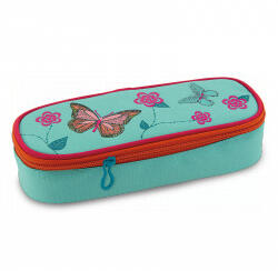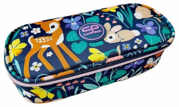 Cool Pack márkájú tolltartó nagyoknak. Az ovális formájú cipzáras tolltartó közepén van egy klapni, melynek mindkét oldalán 5-5 gumipánt található ceruzáknak, tollaknak. Az egyterű részébe bedobálhatóak az írószerek, kiegészítők. A lányos tolltartó üres, a képen látható eszközök illusztrációk. Mérete: 23x6x10 cm. Szín: kék, színes virágos és állatos (őz