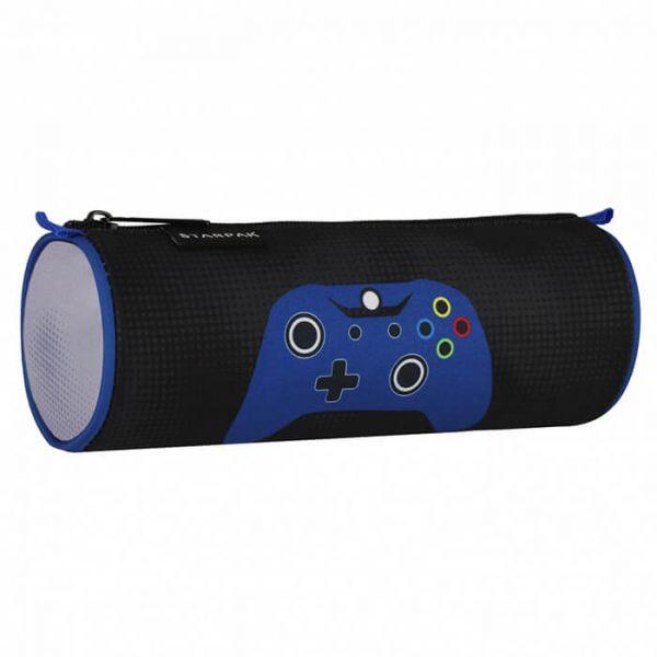 Kontroller mintás henger tolltartó, mely egyterű. Az erős cipzárral ellátott bedobálós tolltartó tágas, kényelmesen elférnek benne az írószerek. Színe: fekete/kék. Mérete: 22x8 cm. Remek választás számítógépes játékot kedvelőknek.