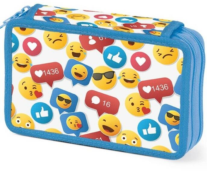 Emeletes tolltartó kék mosolygó arcképekkel, üres. 24 hurkot tartalmaz az írószerekhez és 3 nagyobb hurkot, például vonalzóhoz, hegyezőhöz, radírhoz vagy olló. A nagy cipzárnak köszönhetően nagyon könnyen záródik, kiváló minőségű és tartós anyagokból készült. Gyártó: MFP