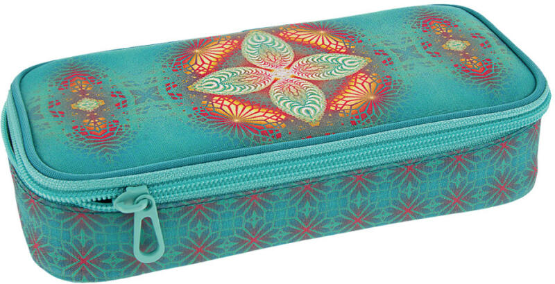 BackUp Ombre ovális tolltartó - Positive trendi színösszeállításban, arc mintákkal díszítve. Egyterű belsejében praktikus felhajtható fül is található, melynek egyik oldalán kis cipzáras zseb van, másikon gumifülek tollnak, ceruzának. Az összes írószer elfér benne, amire az iskolában szükséged lehet.